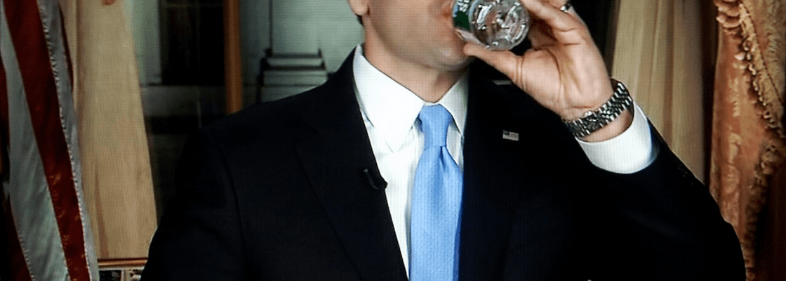 For those unaware, Marco Rubio had 5 minutes to give the republican response to President Obama’s State of the Union. Leaving politics and content out, he was successfully sharing his message, good eye contact, enunciation, emphasis on the right points, etc. Until…